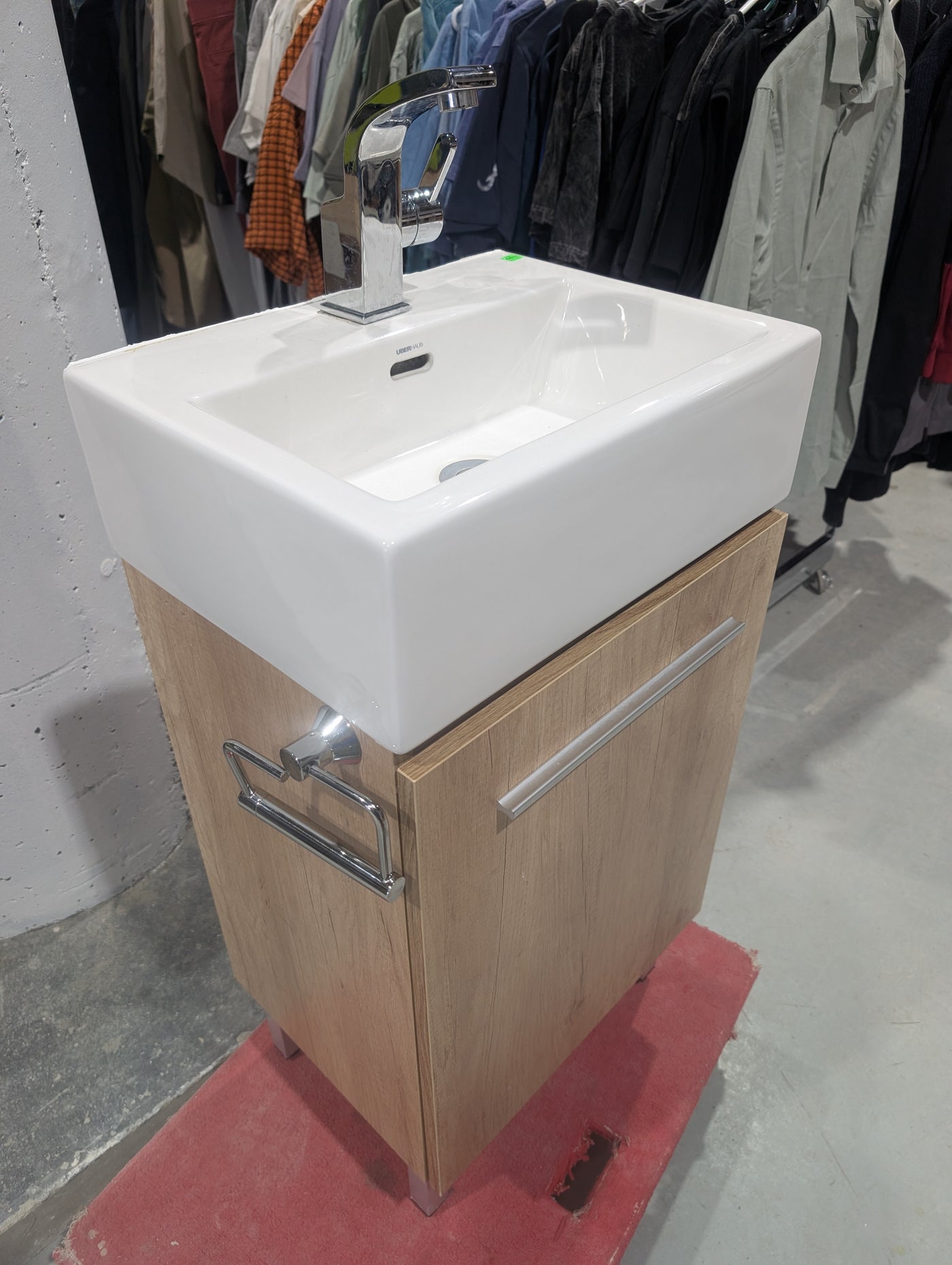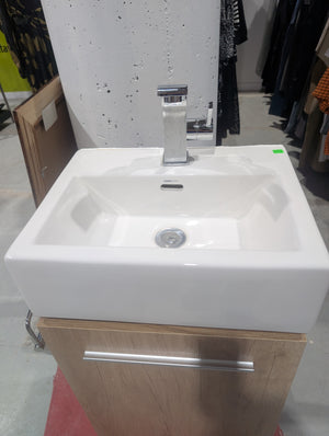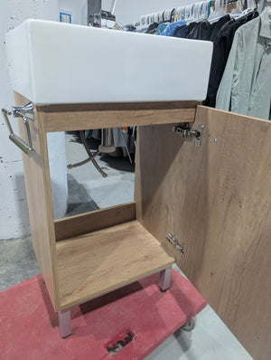 This compact bathroom vanity is the UBERHAUS SoHo Vanity, a space-saving solution specifically designed for small powder rooms or guest bathrooms