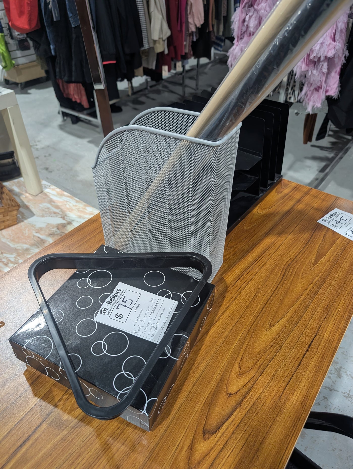 • Includes 3 cues in the original wrapping, one triangle rack and a complete set of pool balls