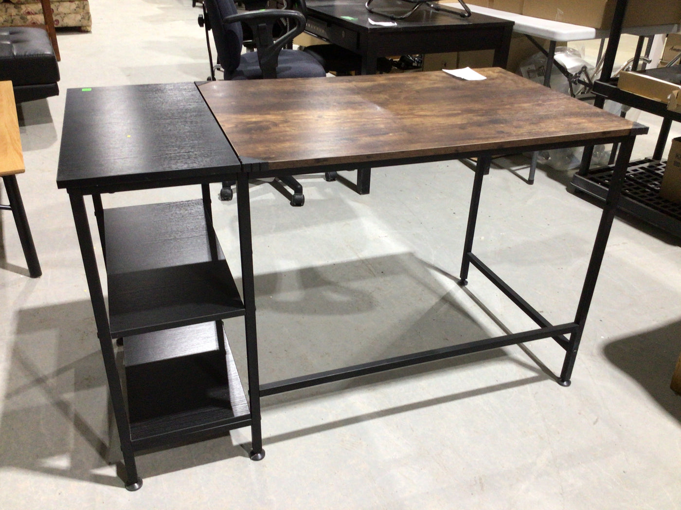 Product Overviewย The Black and Brown Desk is a functional and aesthetically pleasing workspace solution, designed to enhance productivity and complement various interior styles.Features- Material: Constructed from high-quality engineered wood, offering durability and stability. - Dimensions: Measures 60 inches in width, providing ample workspace for multiple tasks. - Design: Features a contemporary dual-tone finish, integrating seamlessly into modern and traditional settings. - Storage: Equipped with two spacious shelves for organized storage of office supplies. - Assembly: Simple assembly process with included tools, enabling quick setup.