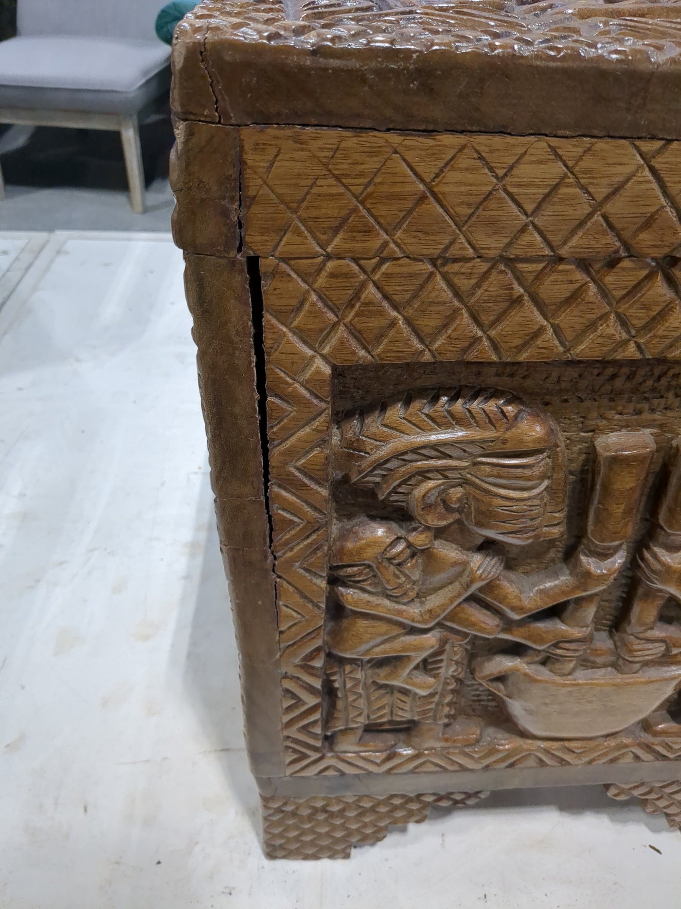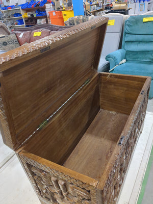 Hand-Carved Mid-Century Wooden linen chest