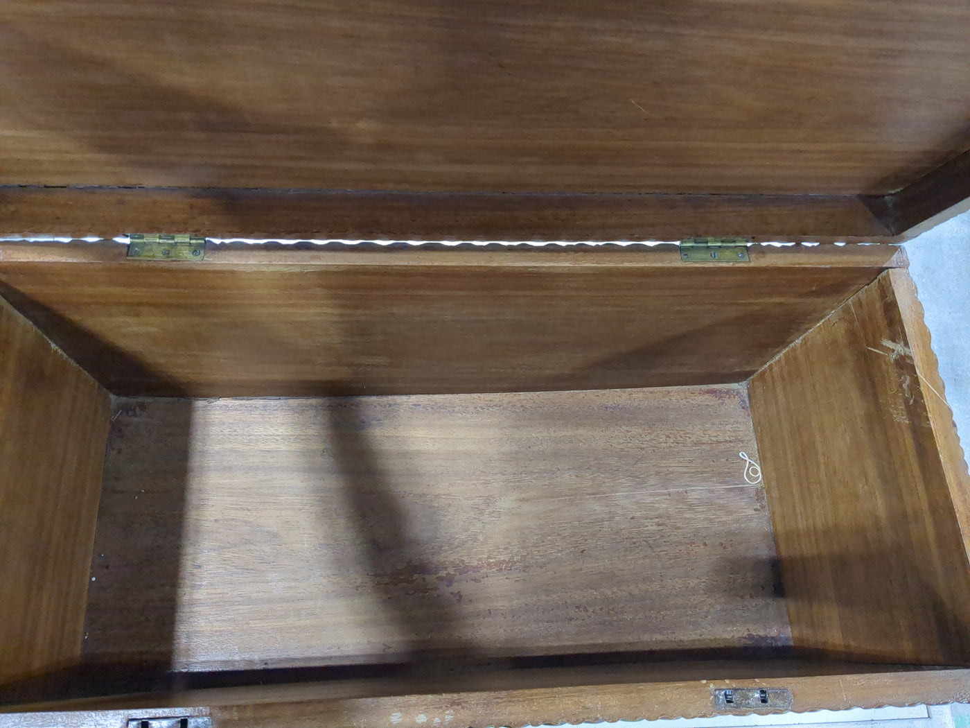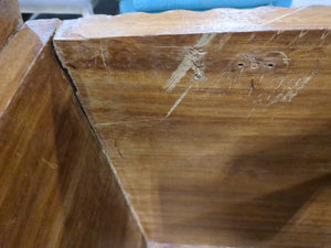 • Has two minor splits in the upper corner joints of the main chest. This makes the lid not sit squarely on the latches.