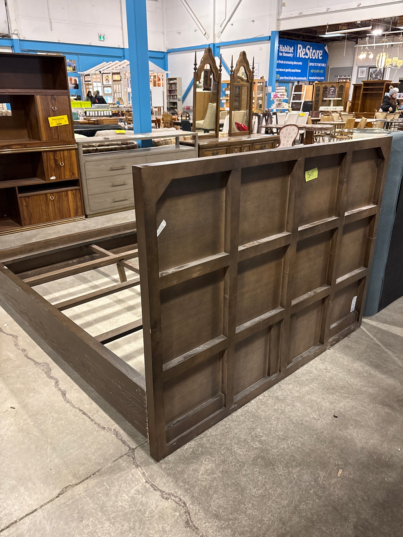 Dark Brown Wood Grain Platform Bedframe - Queen