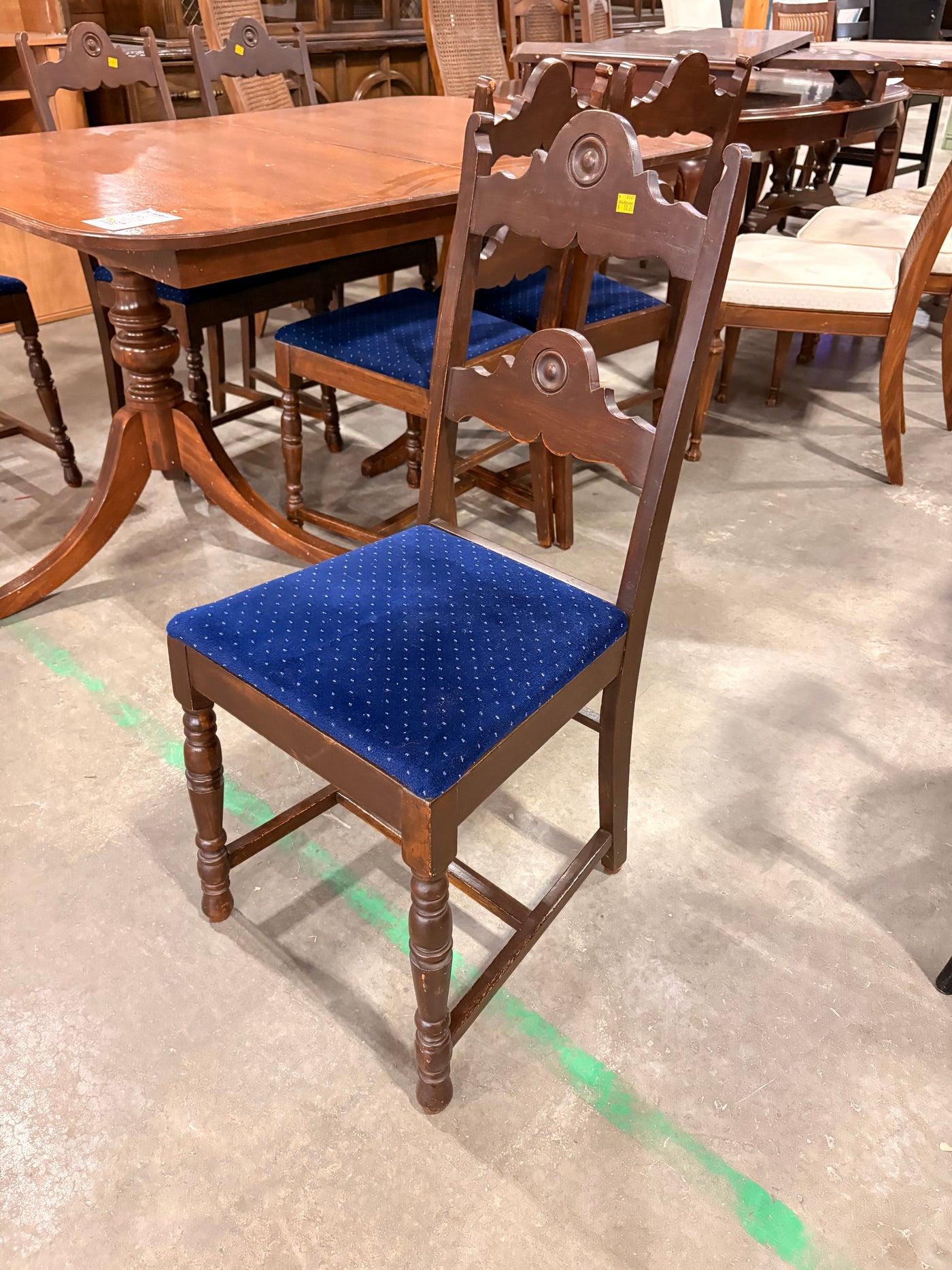 Dark Wood and Royal Blue Dining Chairs