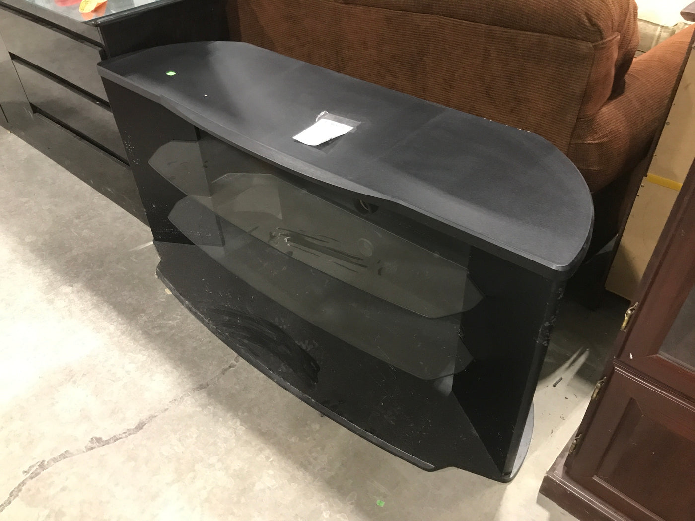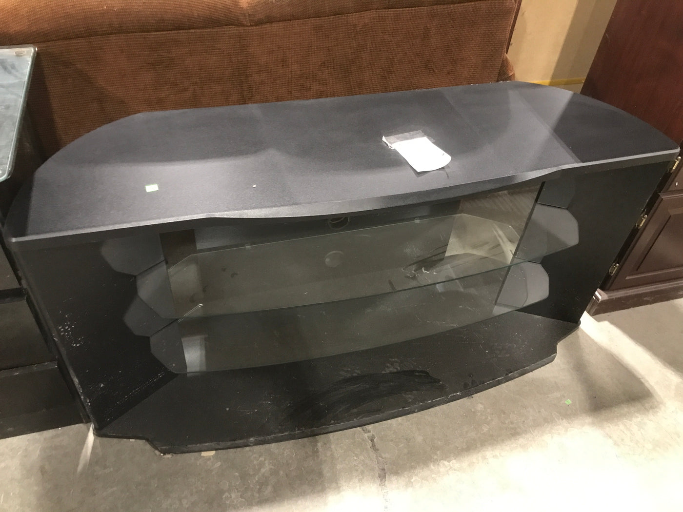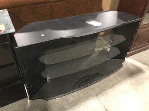 Long Black TV Stand With 2 Glass Shelves