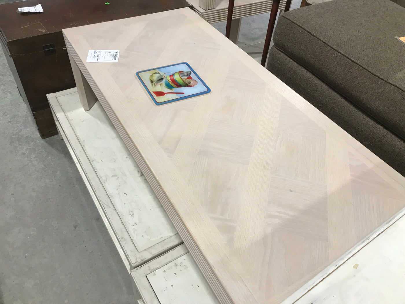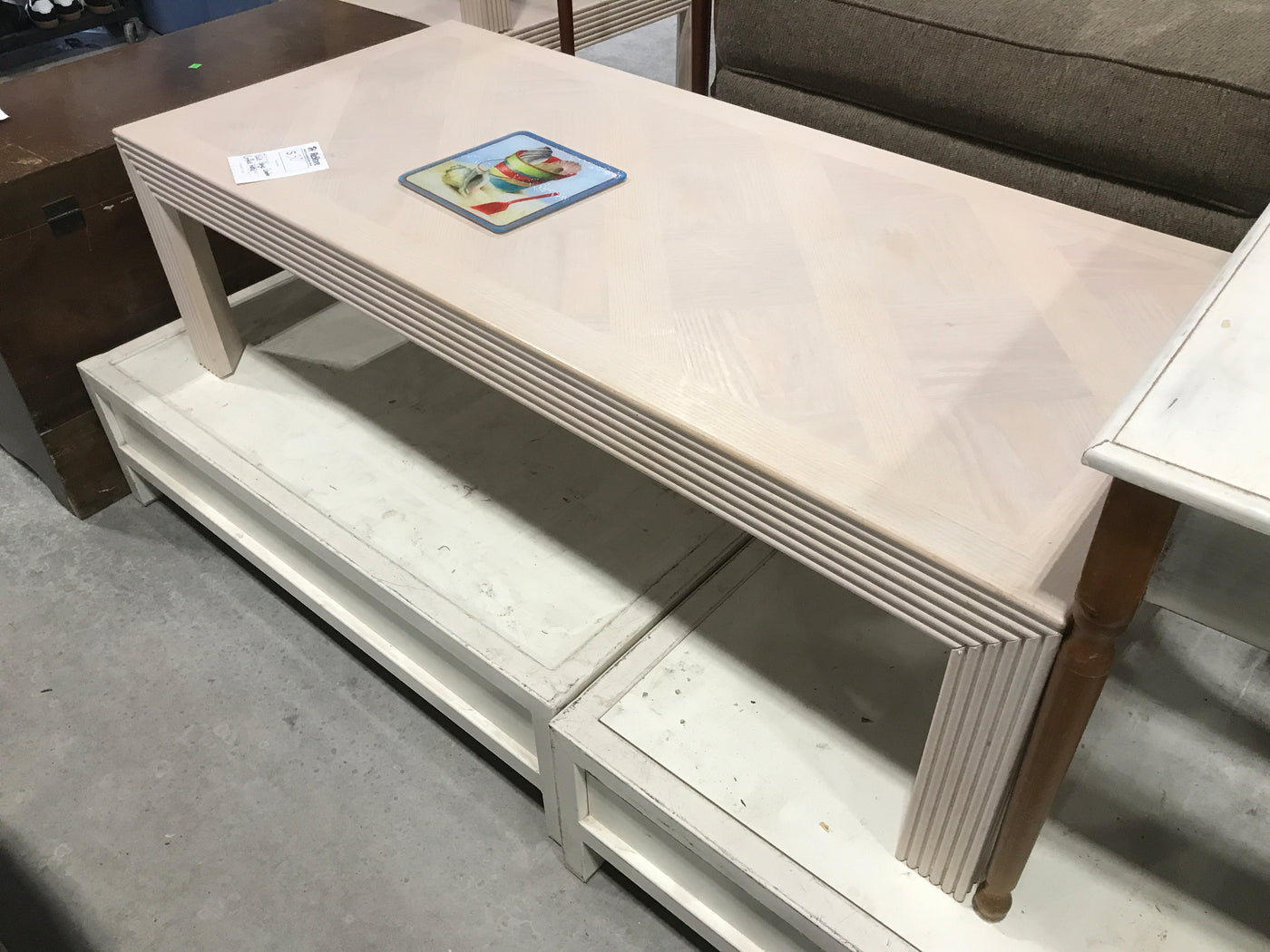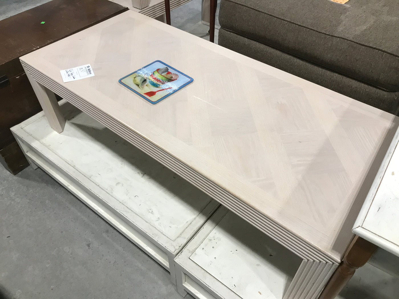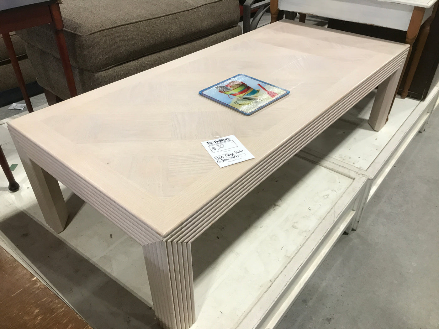 Pale Beige Wooden Coffee Table With Trim Design
