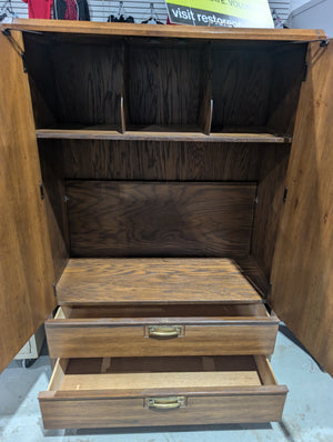 • Solid wood construction with original brass tone hardware intact, adding to its authentic charm and value