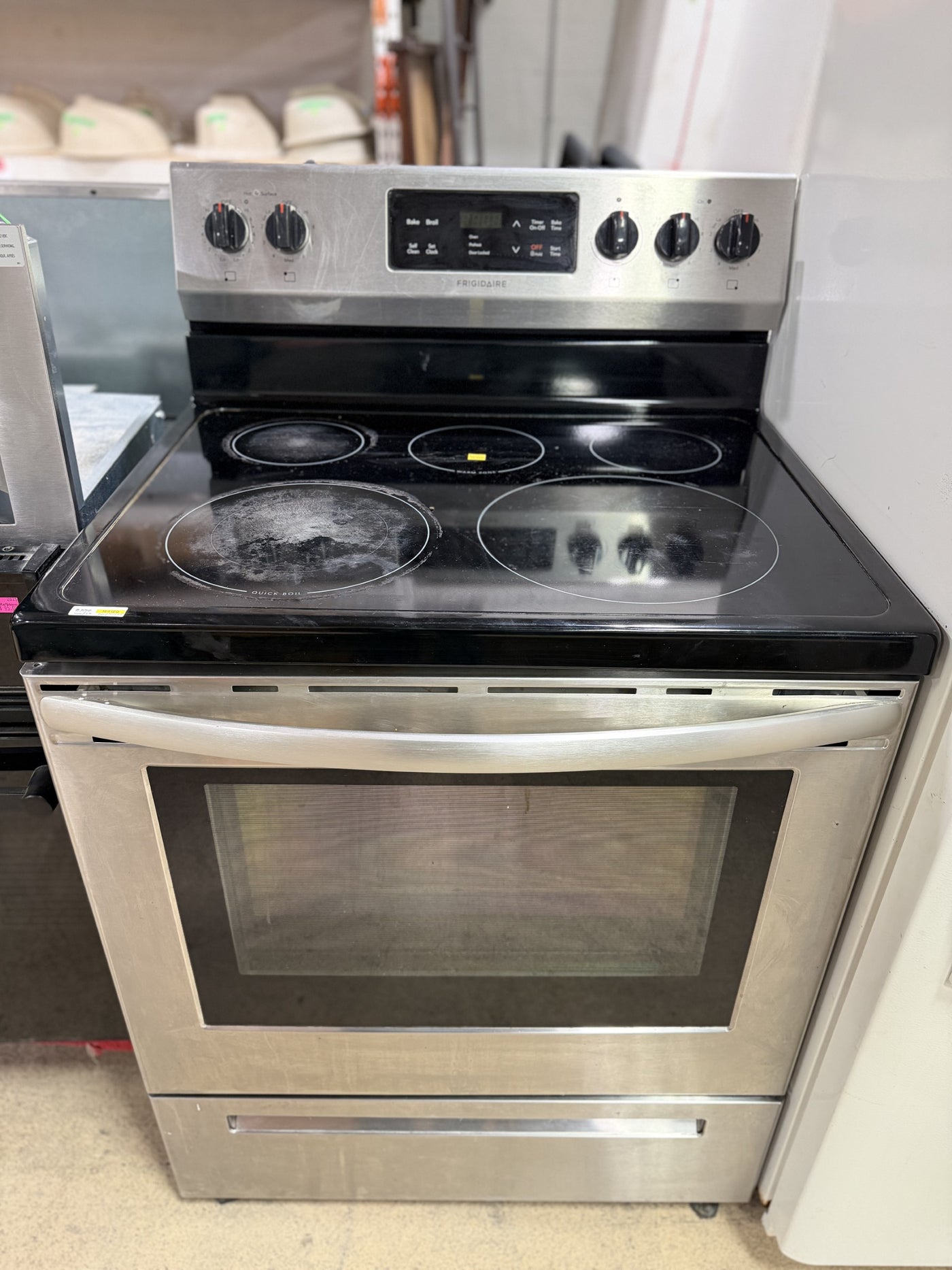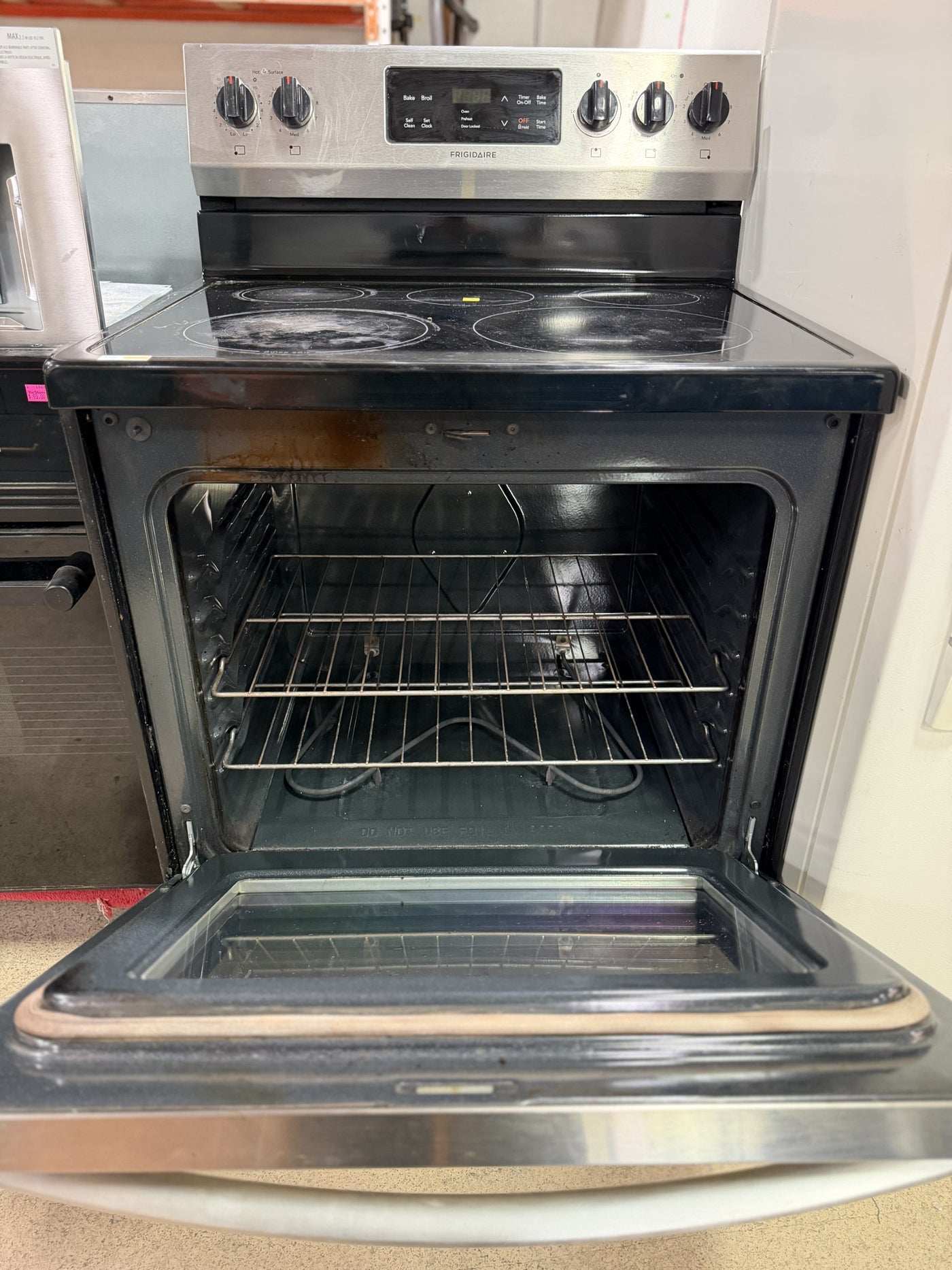 • Frigidaire electric range, smooth glass cooktop with 4 radiant elements