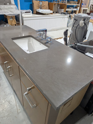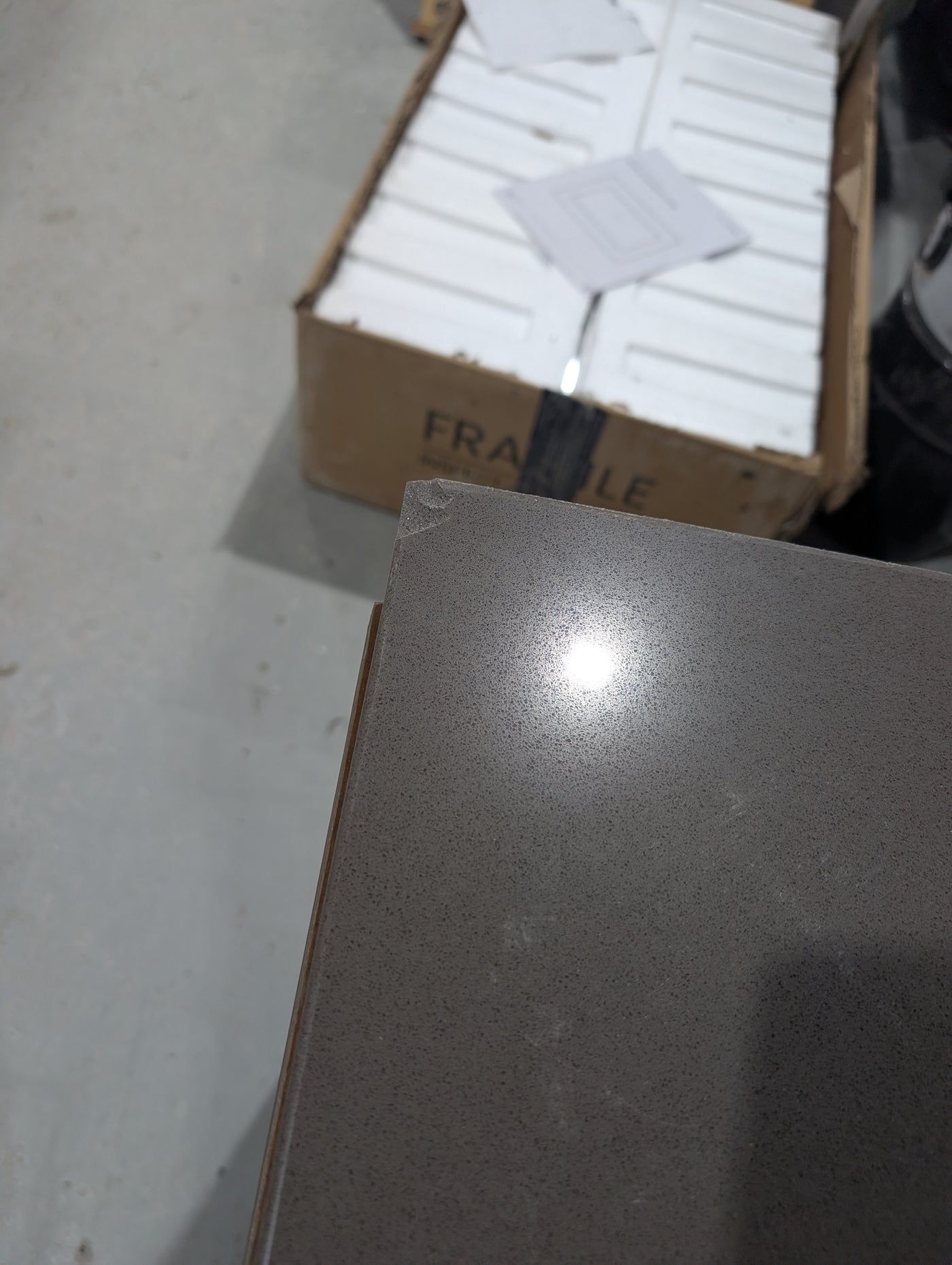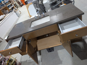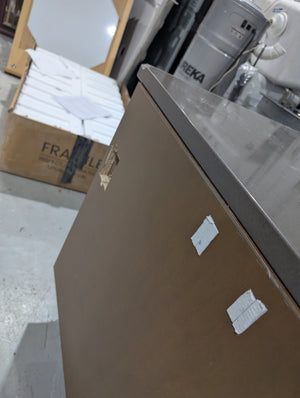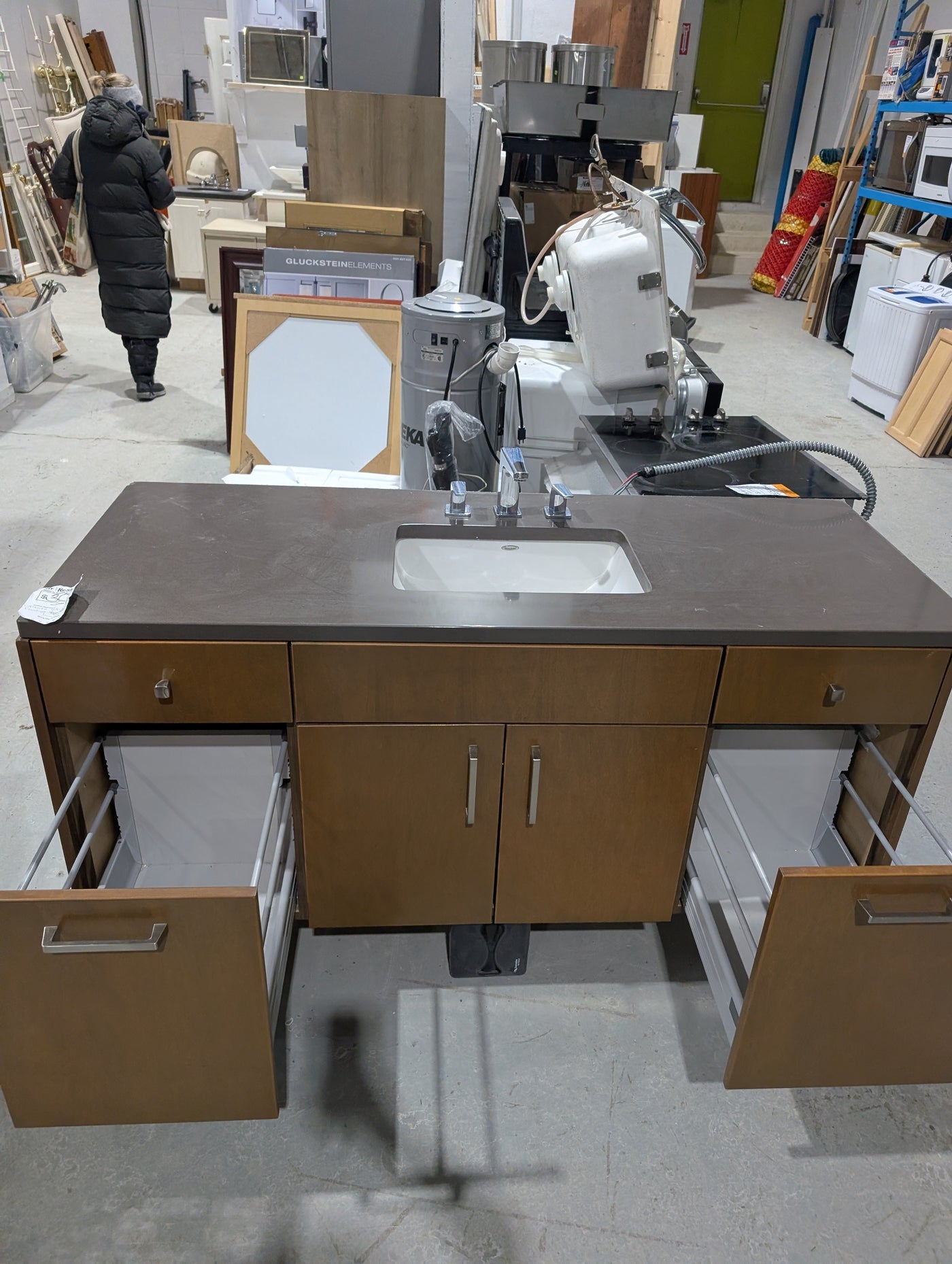 • Brown wooden base with stainless steel bar pulls on 4 drawers