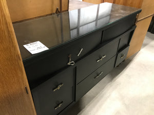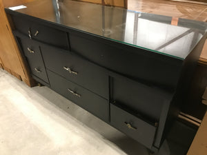 This Black Dresser with Glass Top offers a sleek, modern design complemented by functional storage, featuring eight spacious drawers.