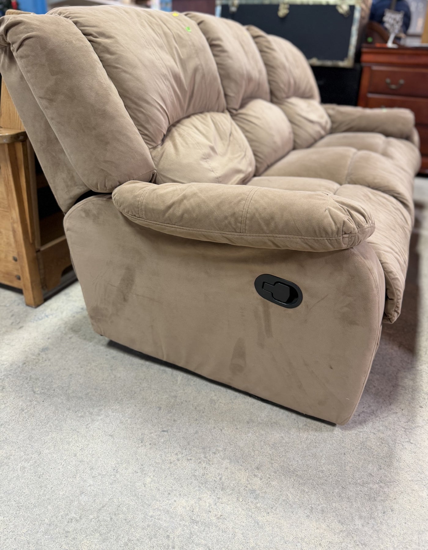 • Soft microfiber upholstery covered in a durable, easy-to-clean tan or beige microfiber fabric that feels soft to the touch