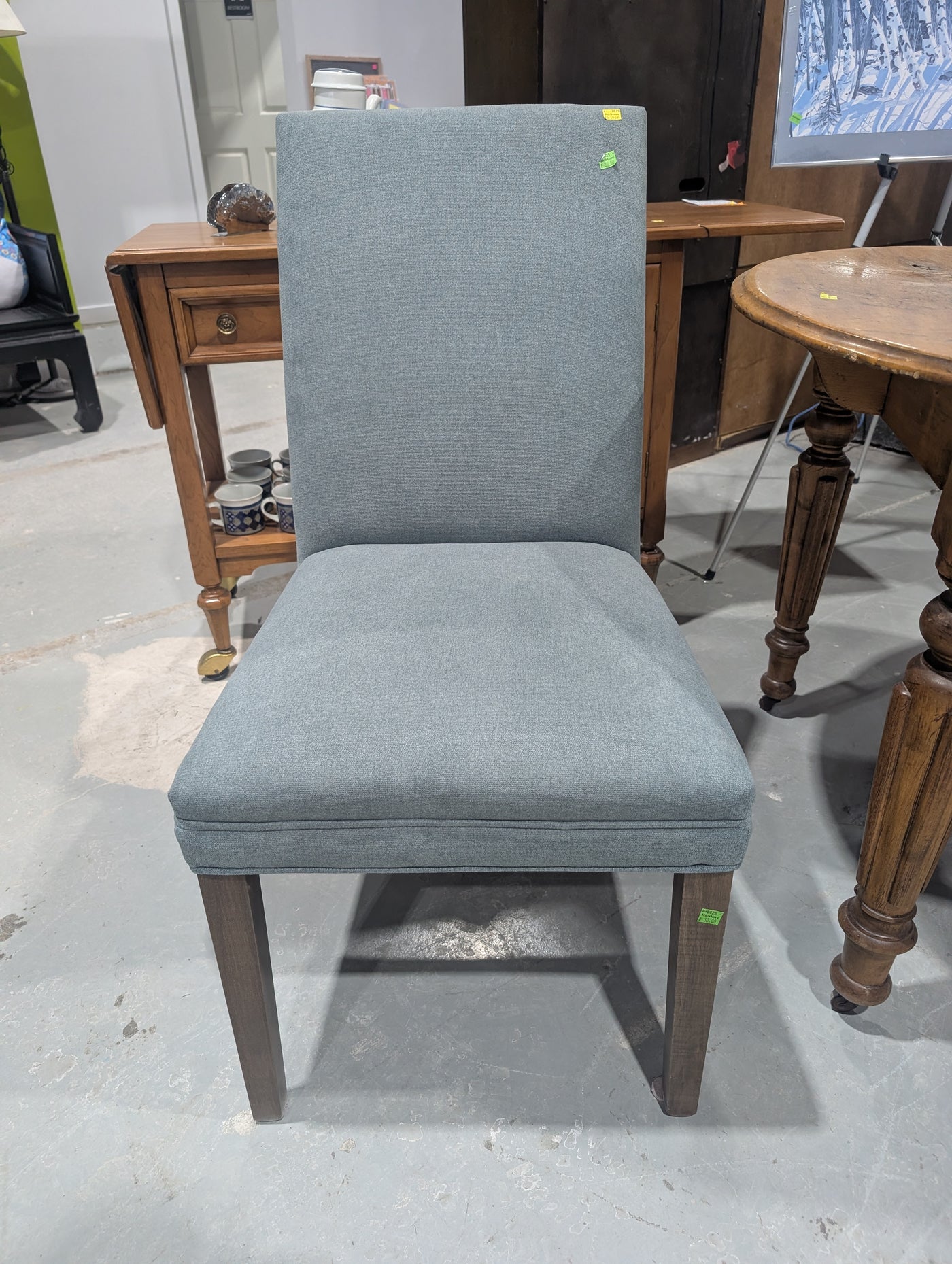 • Neutral blue tone chair, which could add style and elegance to your dining room