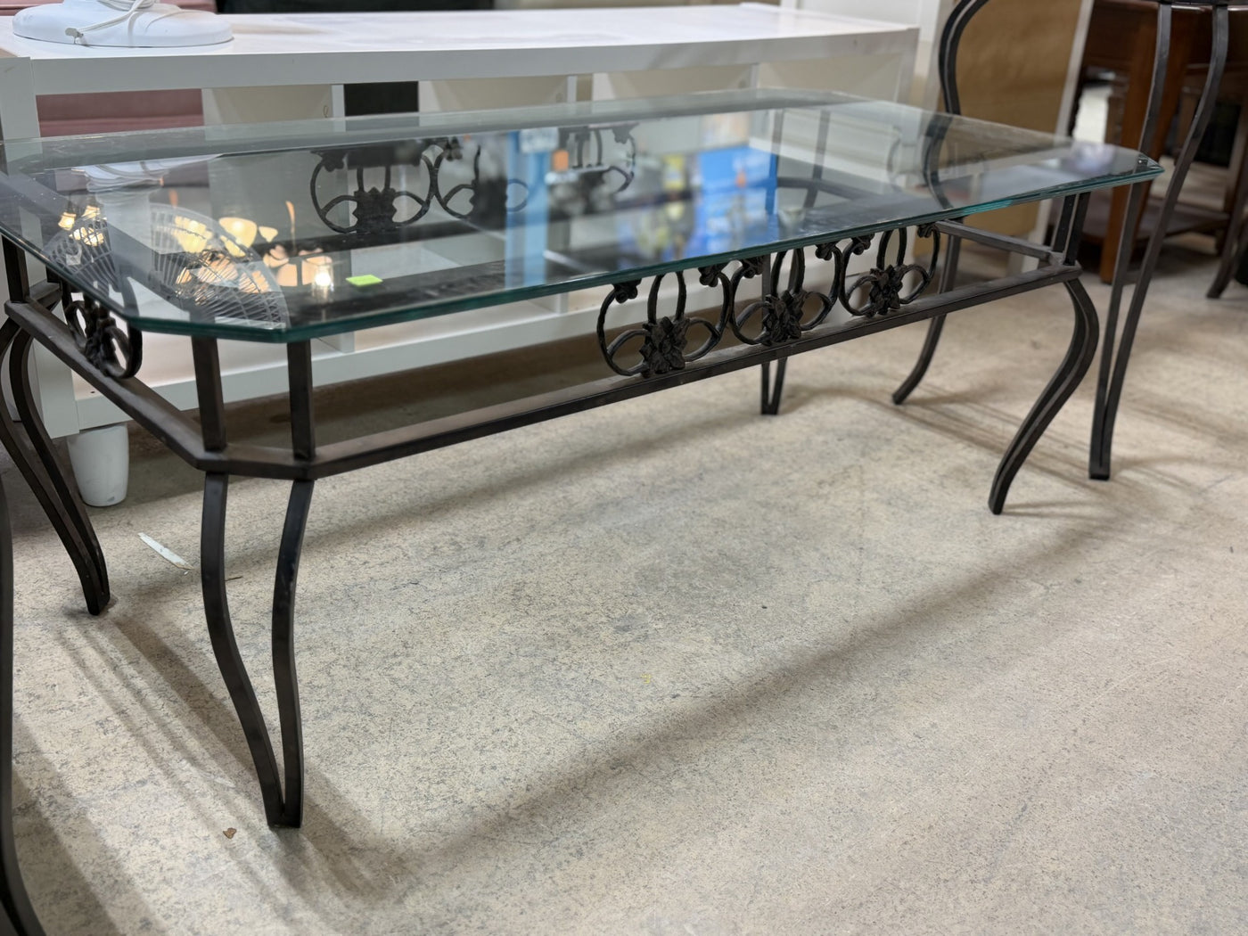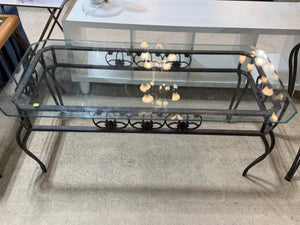Overview:Glass coffee table featuring a clear tempered glass top and a sturdy metal frame with decorative accents, this piece combines durability with timeless design.