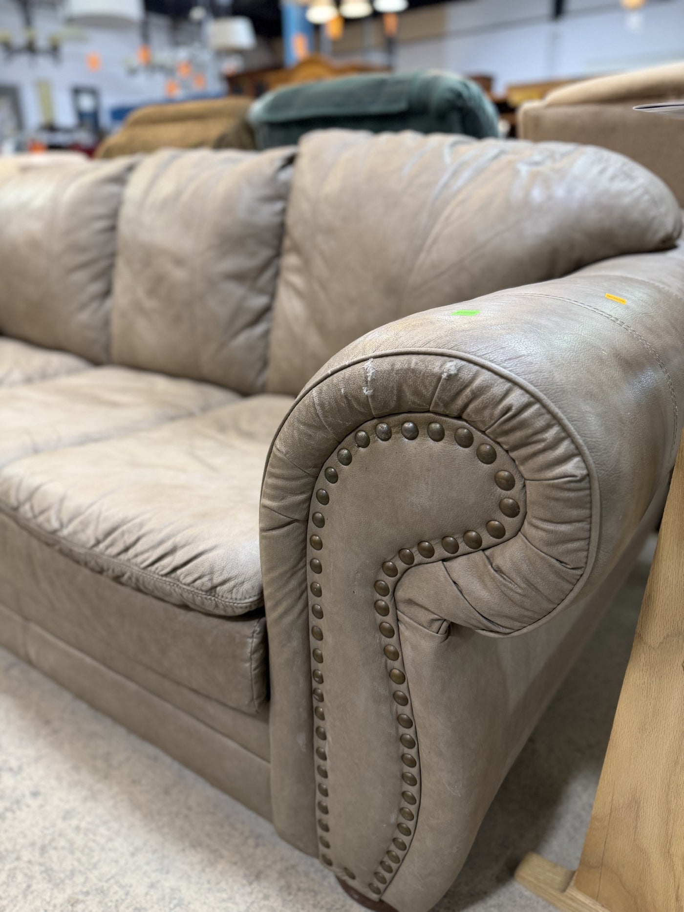 • With its dramatic rolled arms and hand-applied nailhead trim, this sofa exudes a timeless charm and sophistication that is both elegant and inviting