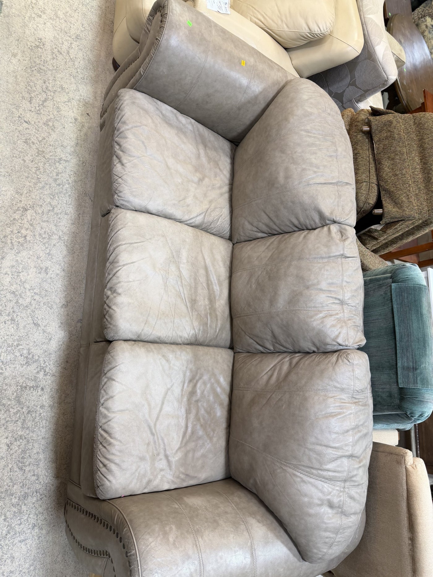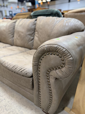 Grey Rolled-Arm Leather Sofa with Nailhead Trim