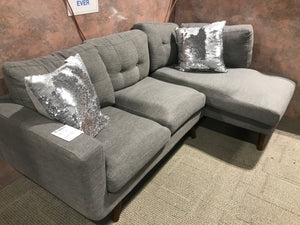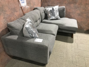Overview:The Grey Sectional Couch is a versatile seating solution designed for modern living spaces. Its neutral grey upholstery complements various decor styles, making it an adaptable addition to any room.Features:The sectional design provides ample seating, accommodating up to five individuals comfortably. Constructed with high-density foam cushions, it offers optimal support and durability. The couch's sturdy frame, made from premium hardwood, ensures long-lasting stability and resistance to wear.