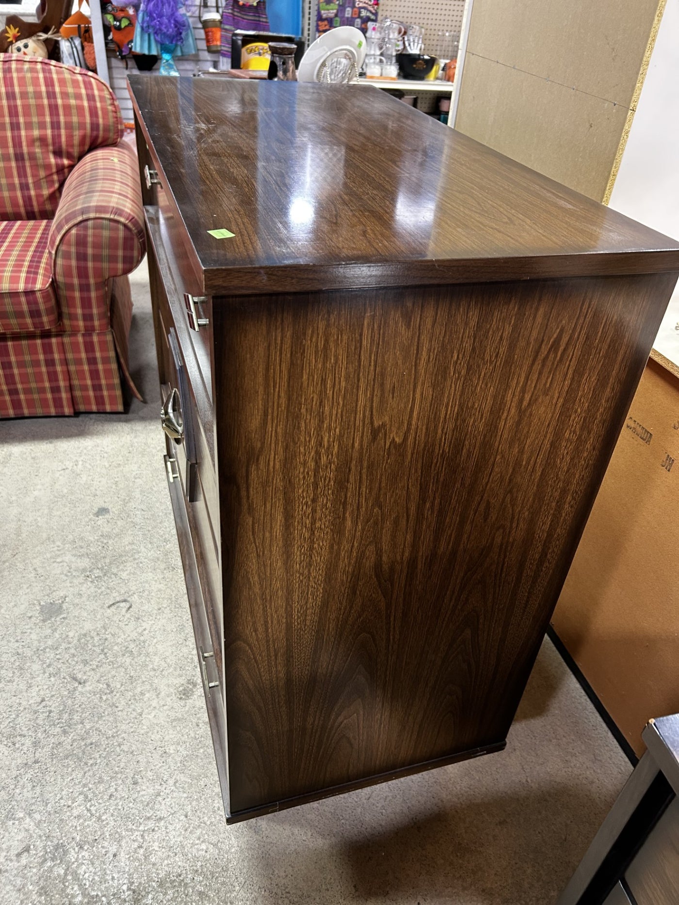 • Wood veneer and Warm walnut finish  with dark trim detailing