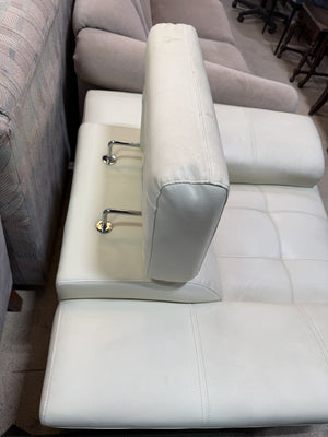 • Soft, durable cream faux leather upholstery