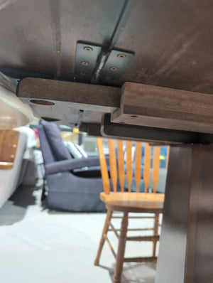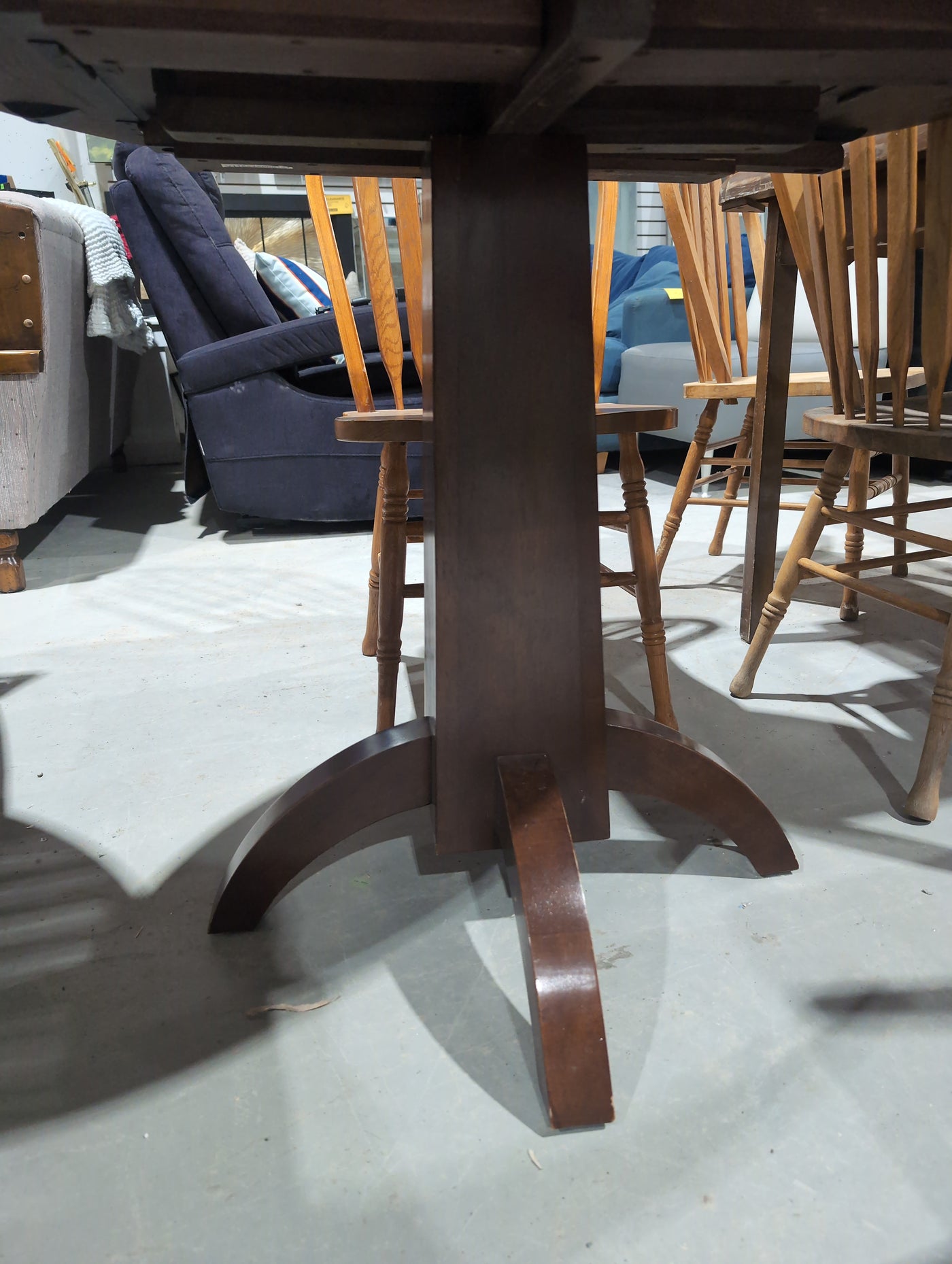 Constructed from solid wood, this table features a timeless round design that easily transitions into an circle shape to accommodate extra guests. The central pedestal base provides maximum legroom and stability, while the dark wood stain adds a rich, sophisticated touch to any interior.