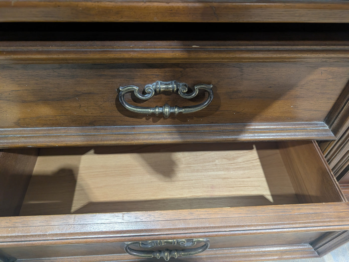 • Vintage French Provincial style indicated by the elaborate  carvings and curved lines