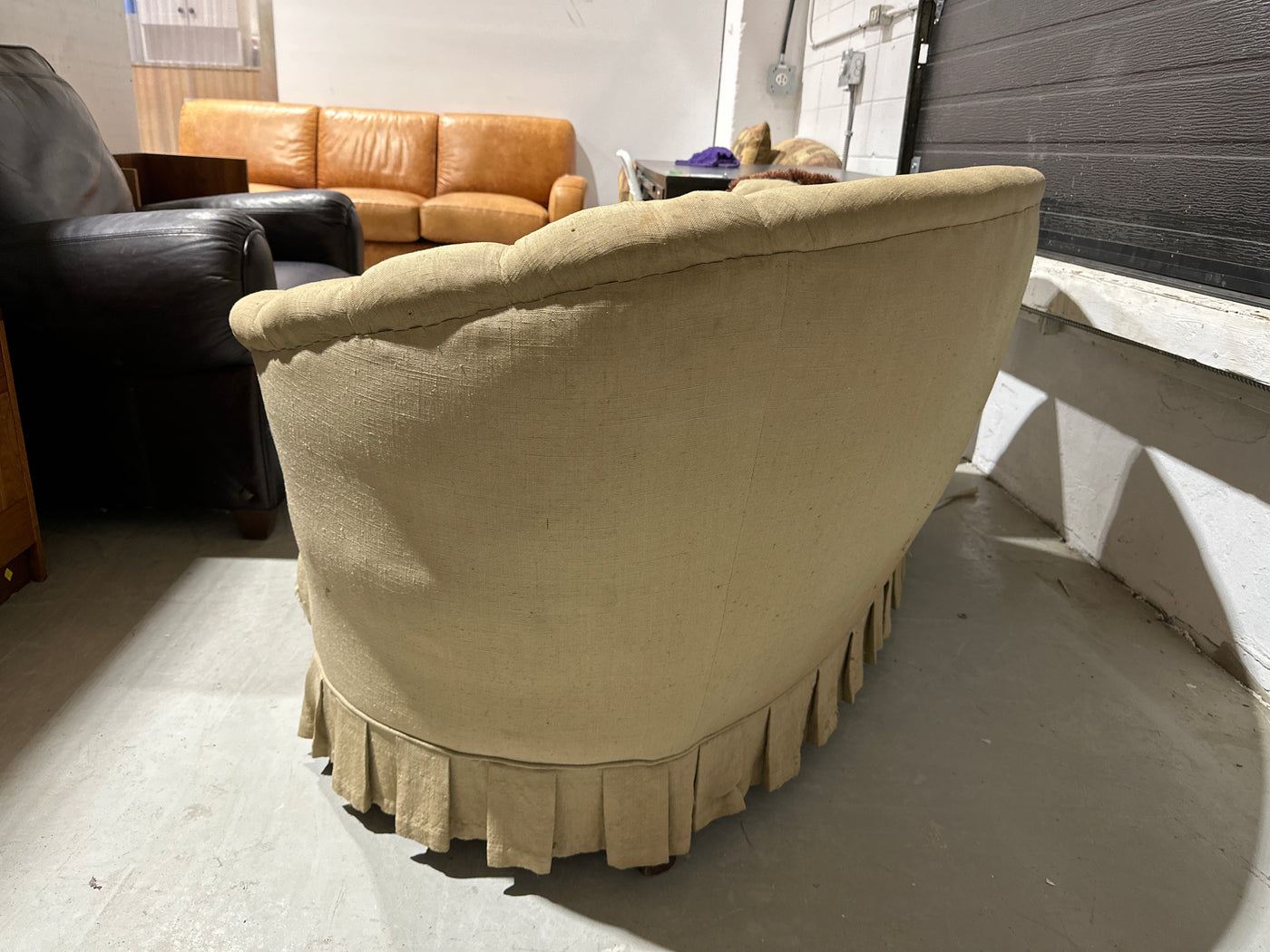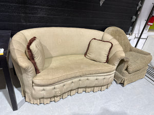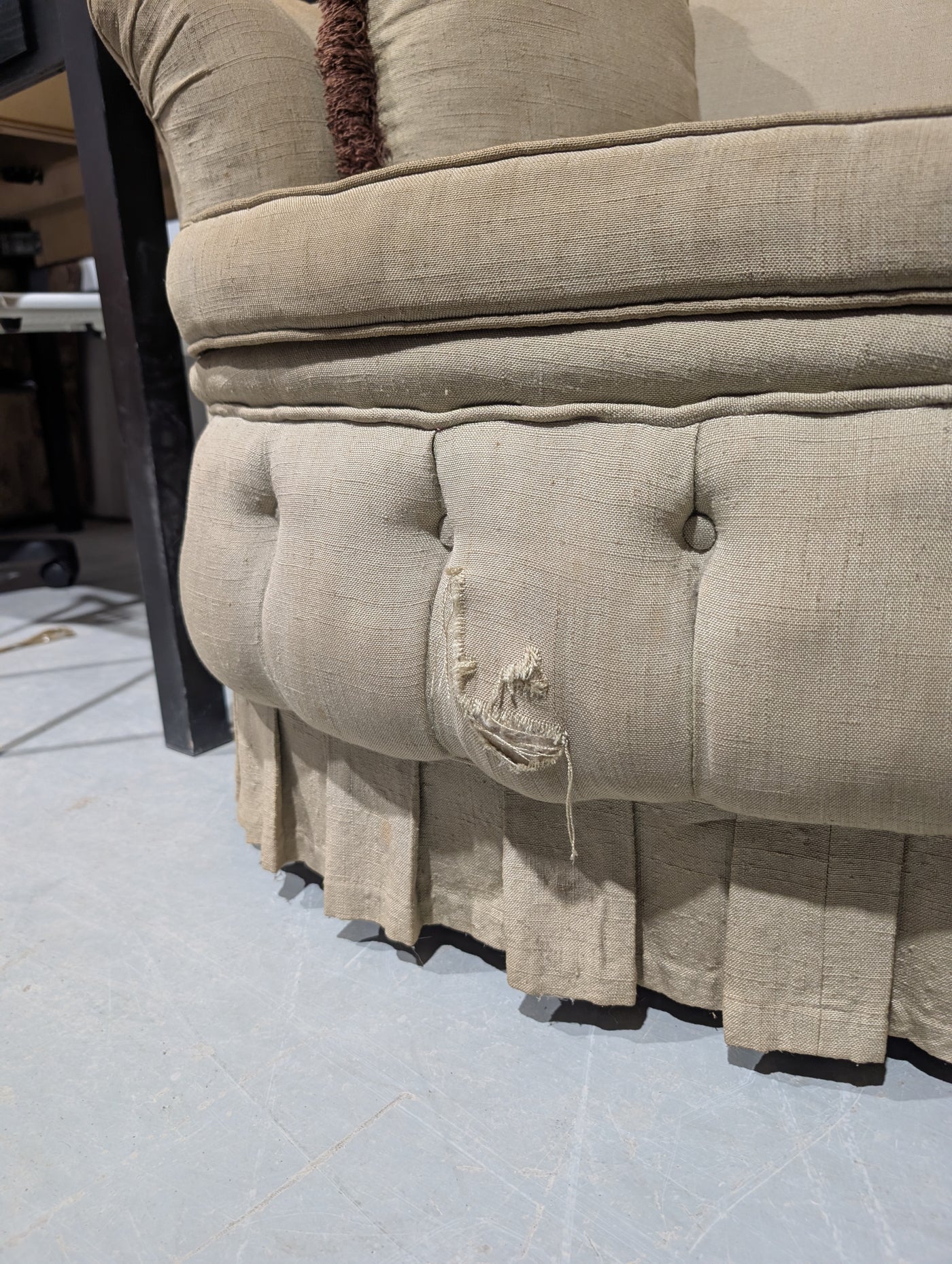 Notes: The upholstery has some noticeable stains and a rip, which have been pictured