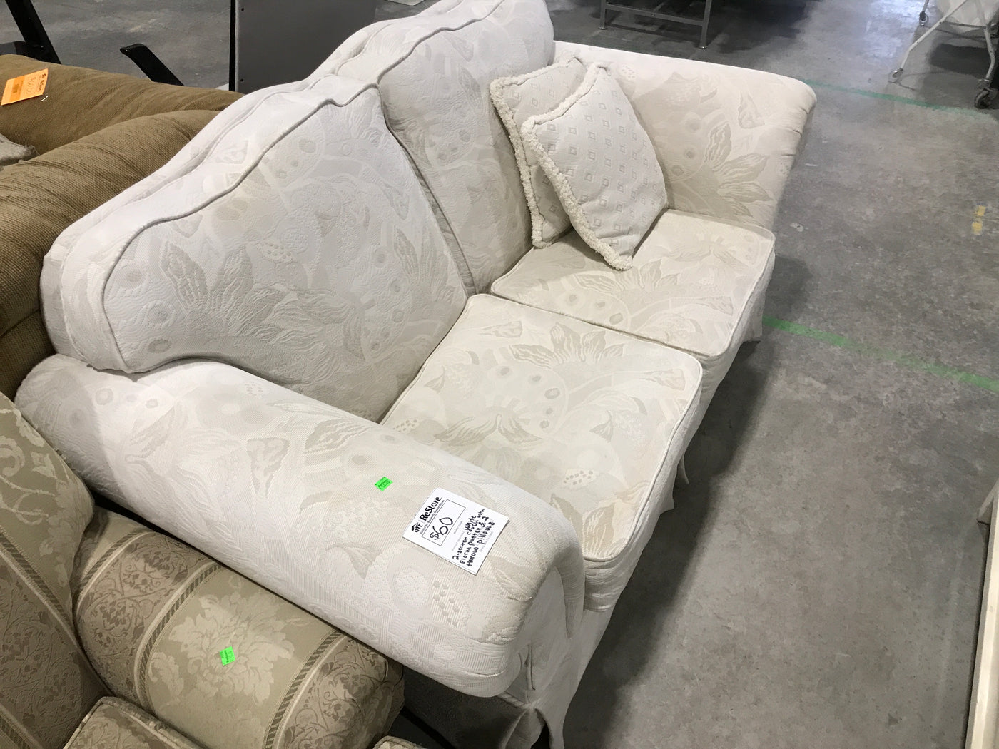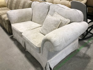 Overview:The White 2 Seater Couch features an elegant design with floral patterns, making it suitable for various interior styles. It includes two coordinating throw pillows for added comfort and aesthetic appeal.Features: