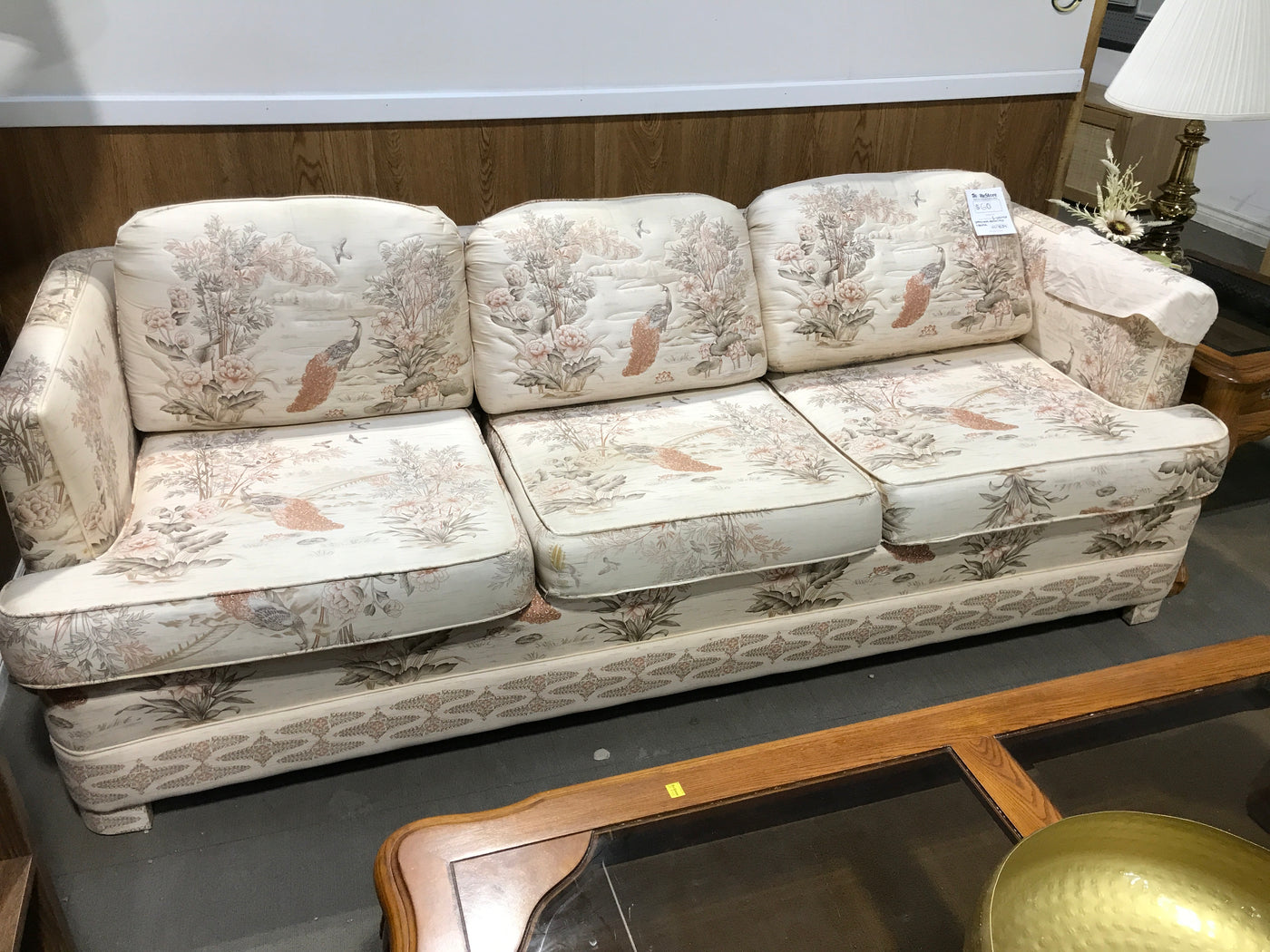 Overview:The White 3 Seater Couch with Nature Details features an elegant design, showcasing intricate patterns of peacocks, birds, flowers, and trees. This couch seamlessly integrates nature-inspired aesthetics into contemporary living spaces.Features: