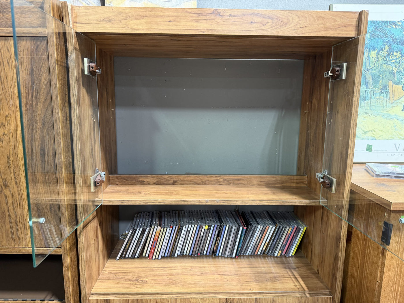 • Internal shelves are height-adjustable, allowing you to customize the storage space to fit various media equipment and accessories