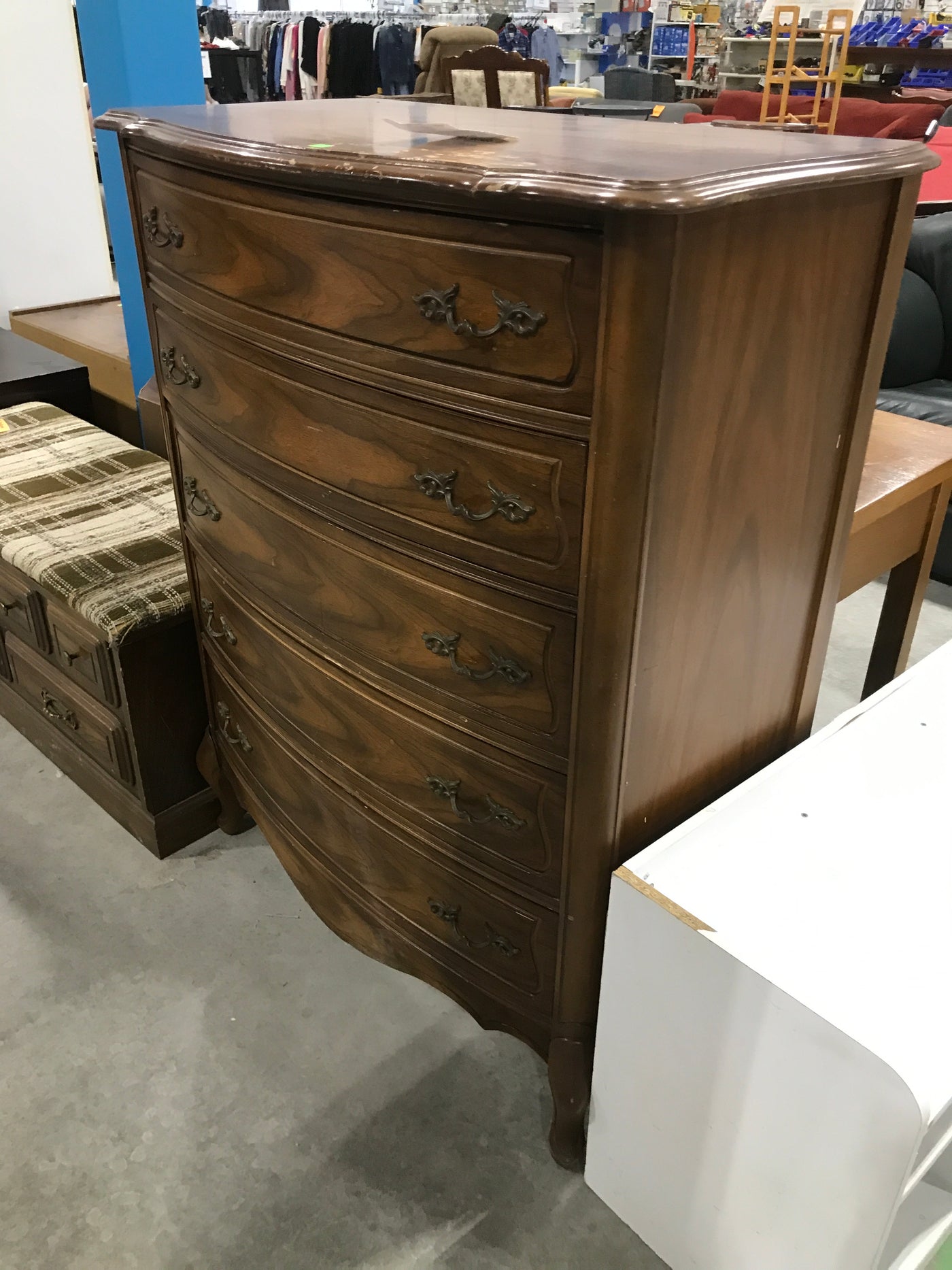 Features:This dresser features five spacious drawers designed for optimal organization, with a tall and curved silhouette that enhances vertical storage. Constructed from durable materials, it ensures long-lasting use while maintaining a sophisticated appearance.