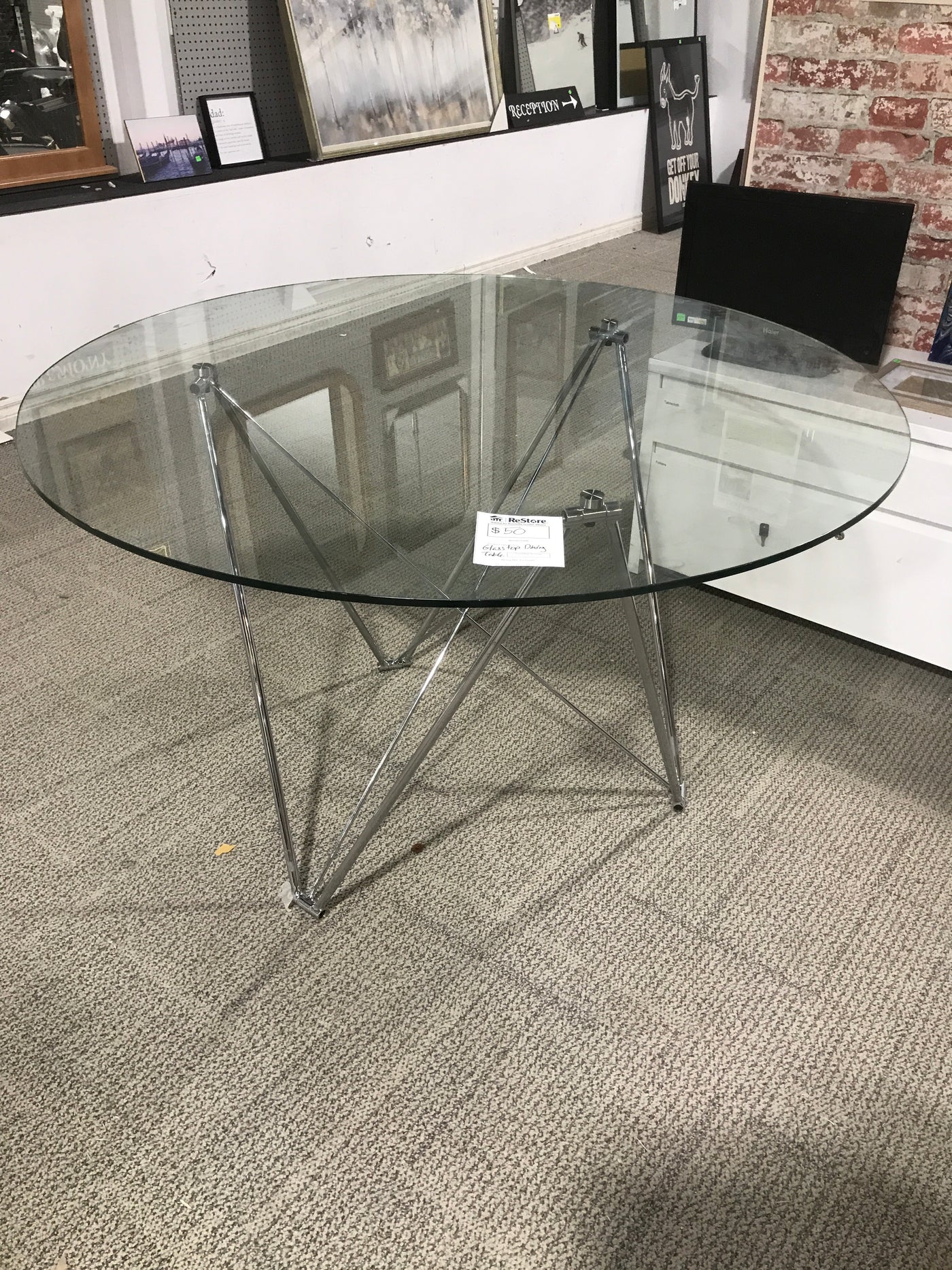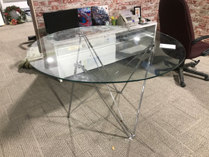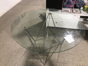 Overview:The Circular Glass Top Dining Table features a sleek, modern design, ideal for enhancing contemporary dining spaces. Its circular shape promotes easy conversation among diners.Features:Constructed with a tempered glass surface for safety and durability. The base is made of sturdy metal, ensuring stability and longevity.