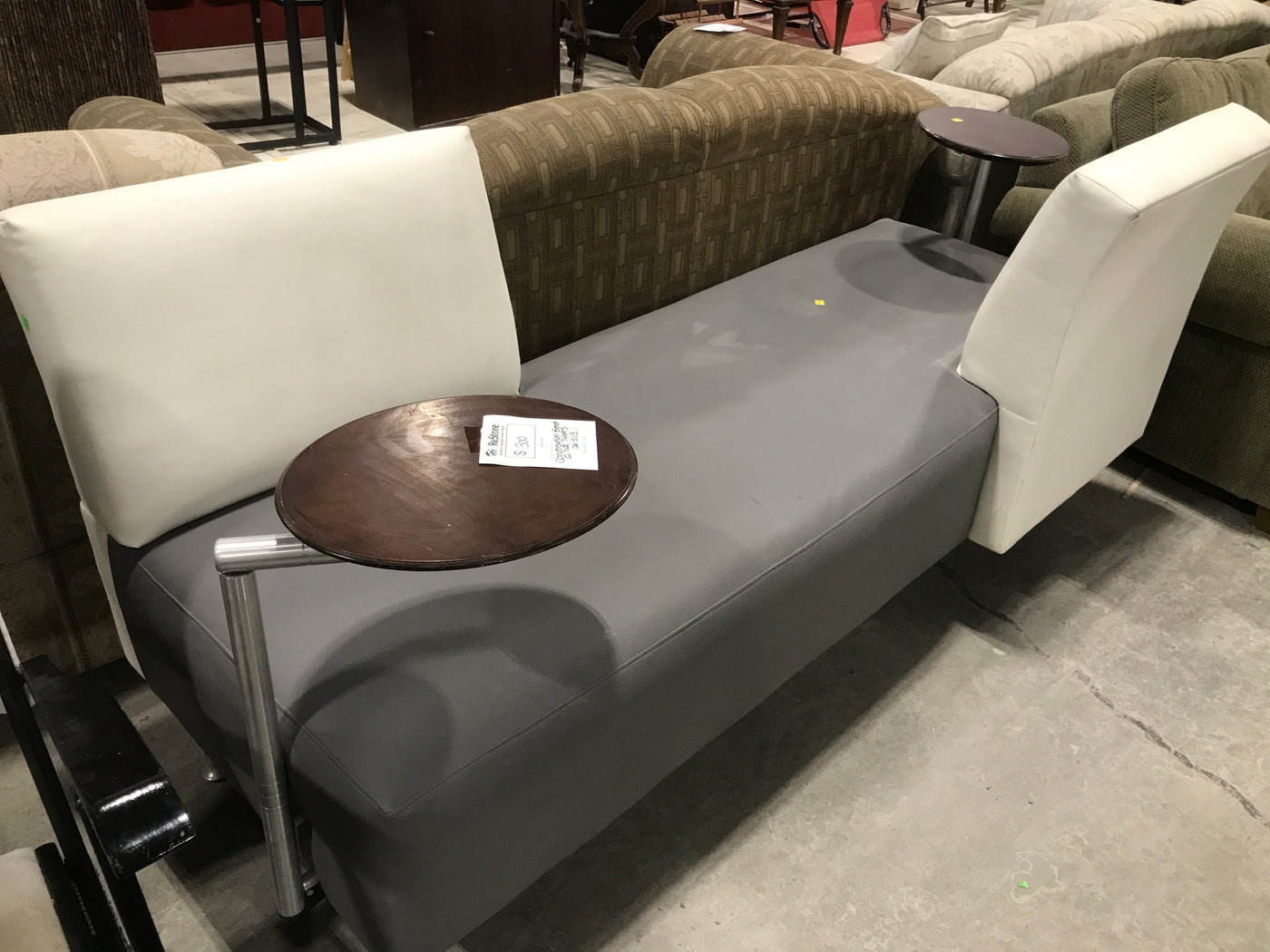 Overview:The Conversation Leather Grey & White Sofa Bench is designed for modern living spaces, offering both style and functionality. Its sleek appearance seamlessly integrates into various interior designs.Features: