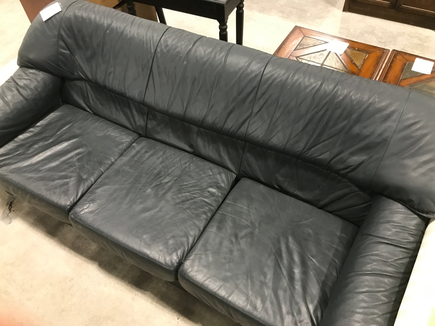 Overview: The Dark Grey 3 Seater Leather Couch offers a sophisticated seating solution, combining style and comfort for modern living spaces.Features: