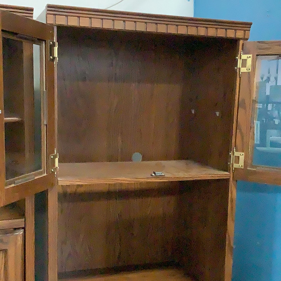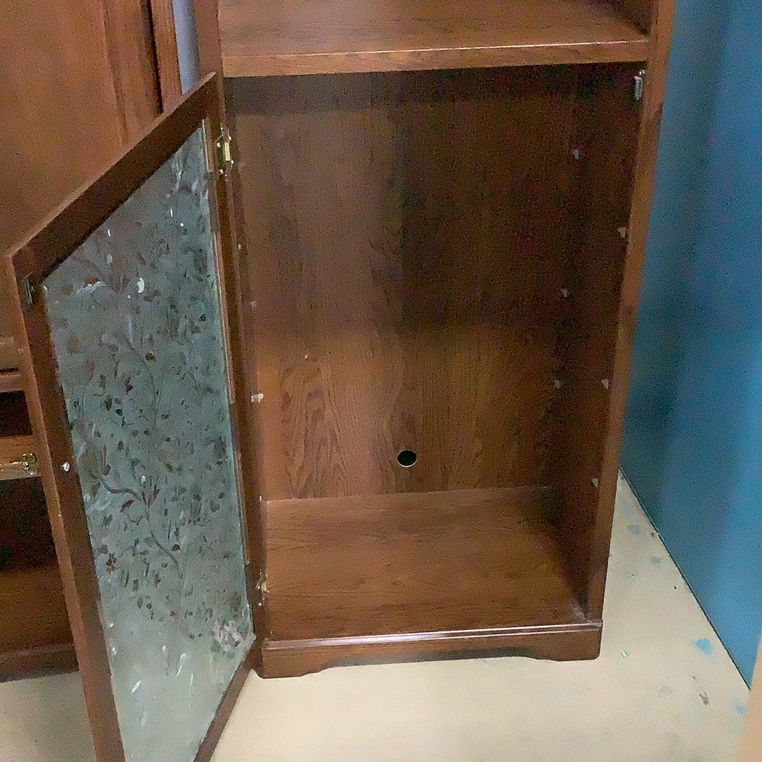 • Lower cabinet space has pegs for 3 shelves (not included)