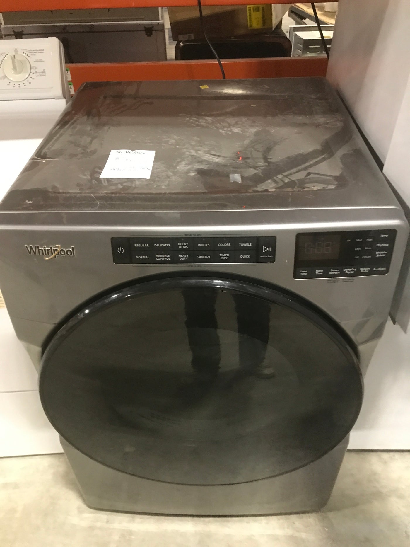 Overview:The Grey Whirlpool Front Loading Dryer offers efficient and reliable drying capabilities, designed for modern laundry needs. With a sleek exterior, it enhances the aesthetics of any laundry room.Features: