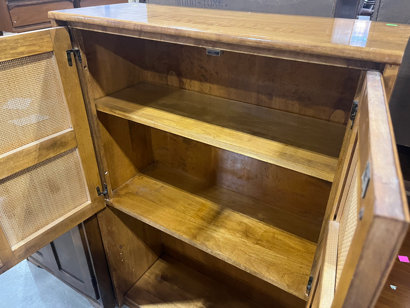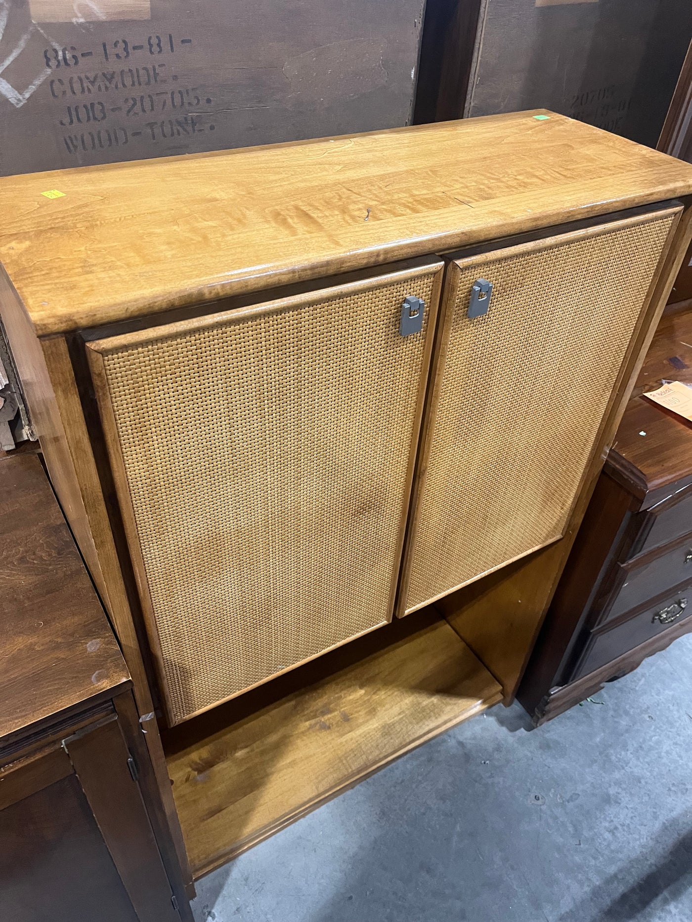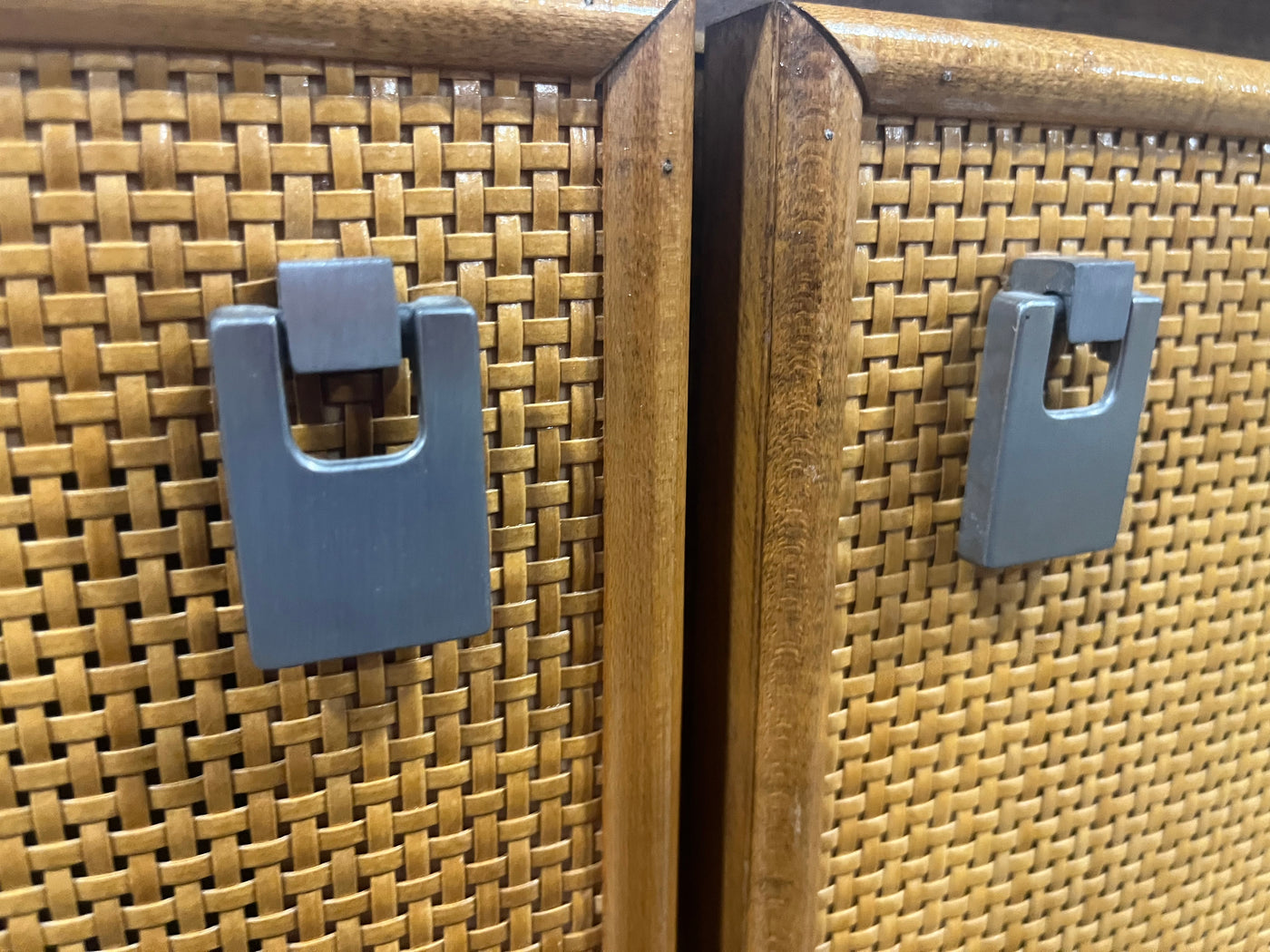 Mid-Century Modern Rattan Door Cabinet – Natural Wood Finish