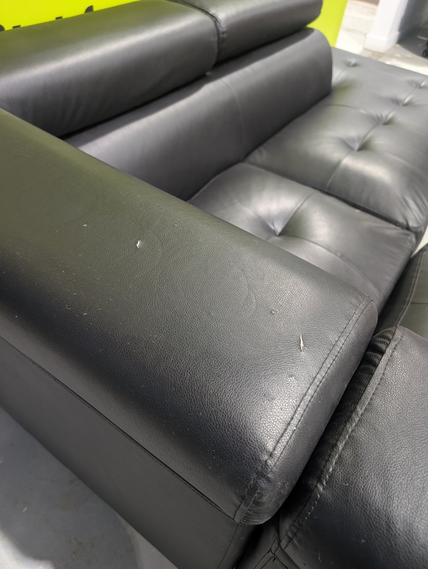 • One of the seat cushions has noticeable damage, which has been considered in the pricing. There are also some rips in the faux leather which can be seen in the pictures