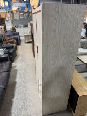 • Dual storage compartments features a large hanging area with a sturdy metal rail for coats and dresses, alongside a vertical shelving unit for folded essentials