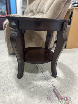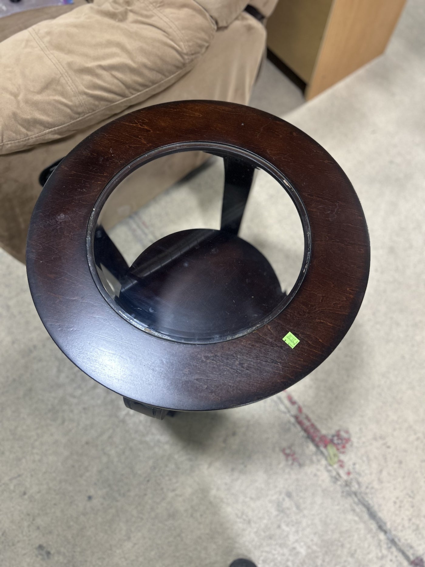 Round Wooden End Table with Glass Top