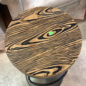 • Bamboo panel seat, carved and dyed to look like charred hardwood
