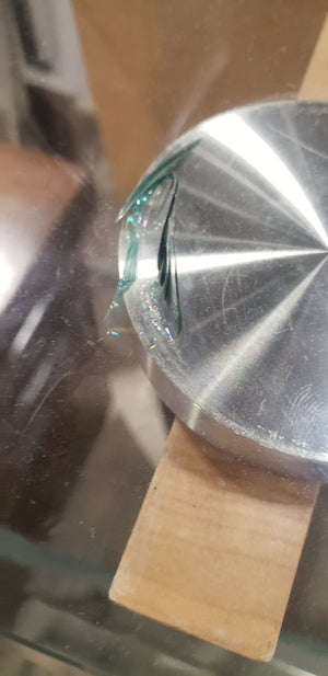 • Chrome Disc Support Accents: Four polished chrome discs securely fasten the glass to the wooden support, adding a subtle metallic accent that reinforces the modern look.