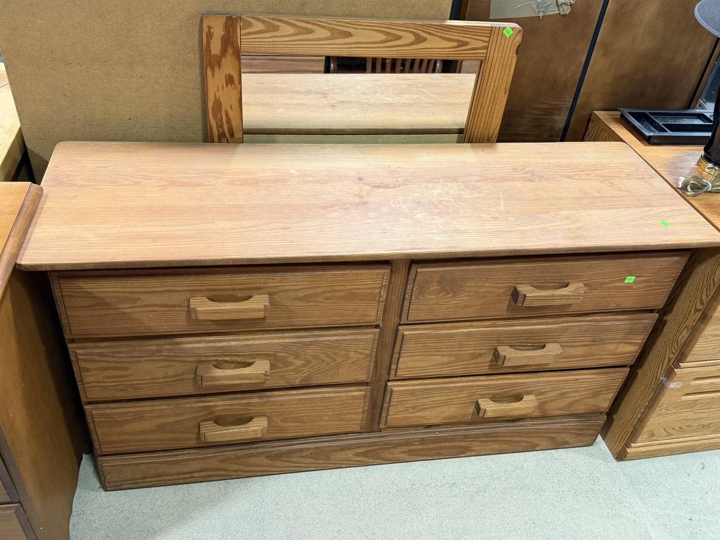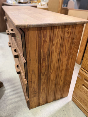 Solid wood dresser with a matching mirror, designed with both function and durability in mind, this piece offers generous storage while showcasing a classic natural wood grain finish that complements a variety of interiors.