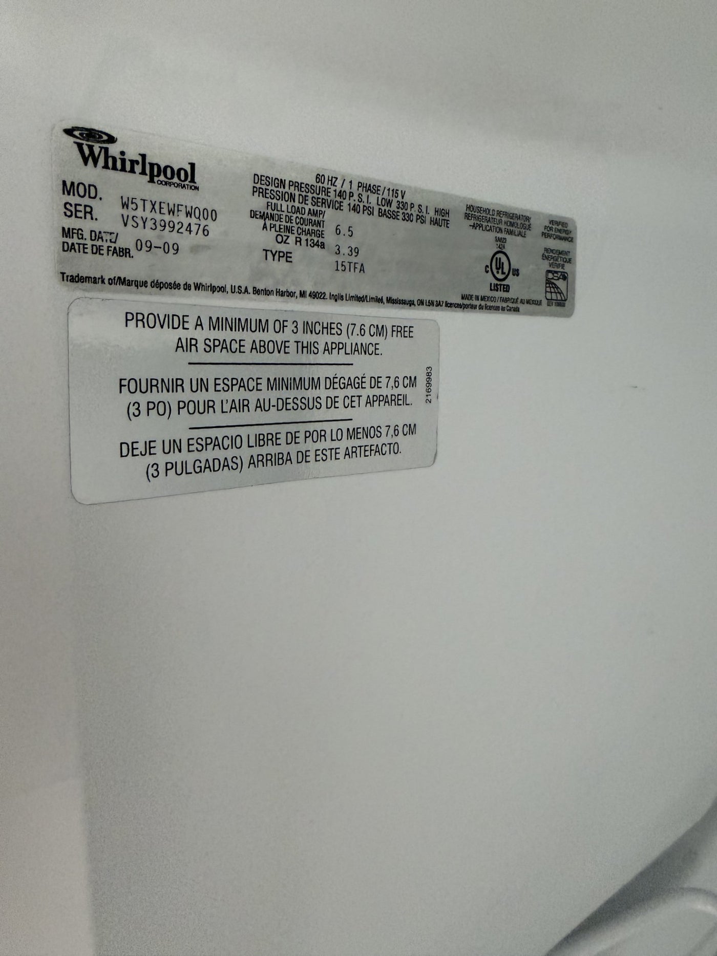 Whirlpool White Top-Freezer Refrigerator